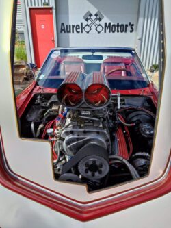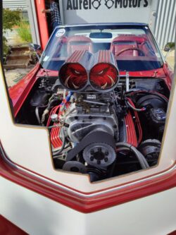 moteur v8 small bloc 350ci équipé d’un compresseur WEIAND double carburateur 4bbl HOLLEY .
